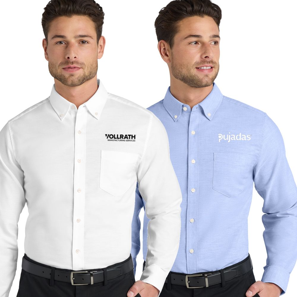Look your best in a tried-and-true Oxford that performs. Designed to release stains, our wrinkle-resistant SuperPro Oxford has a soft hand to keep you looking neat and professional all day long.